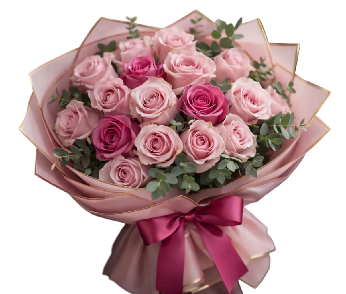 Midtown Blush – Mother’s Day Luxe is a premium rose bouquet designed to celebrate elegance and love. Featuring a luxurious arrangement of fresh pink and fuchsia roses with eucalyptus, this bouquet is wrapped in elegant Korean-style pink paper with gold accents and finished with a signature ribbon.