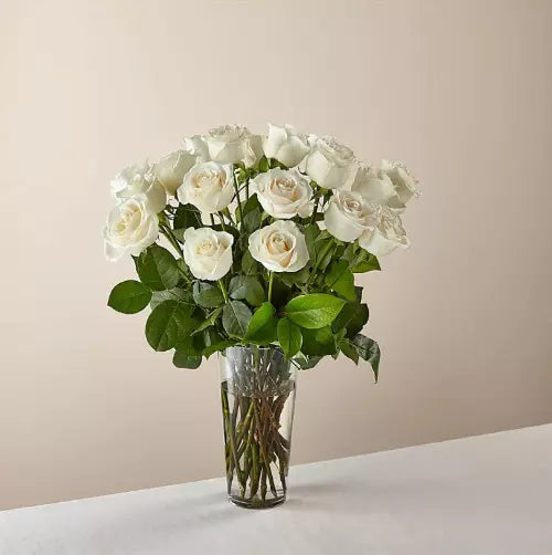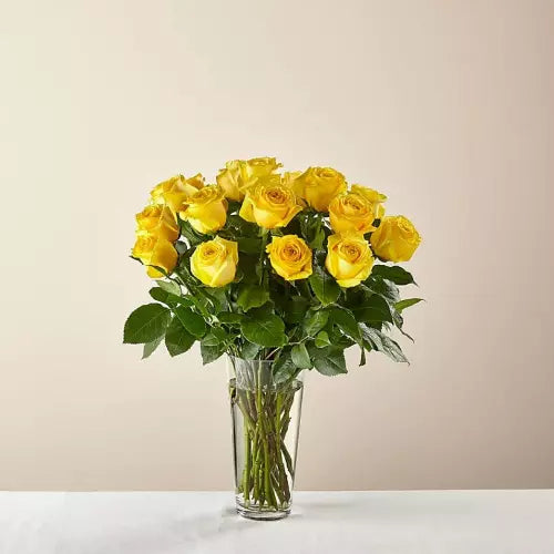 Ramo de 18 Rosas de Tallo Largo en Florero, Ramos y Arreglos Especiales de Rosas, Entrega de Rosas, Flores y Regalos de Aniversario, Flores y Regalos Románticos, Día de la Madre, Día de San Valentín. Ramos de Flores en Coral Gables, Miami, Flores a domicilio, Floristería en Coral Gables.